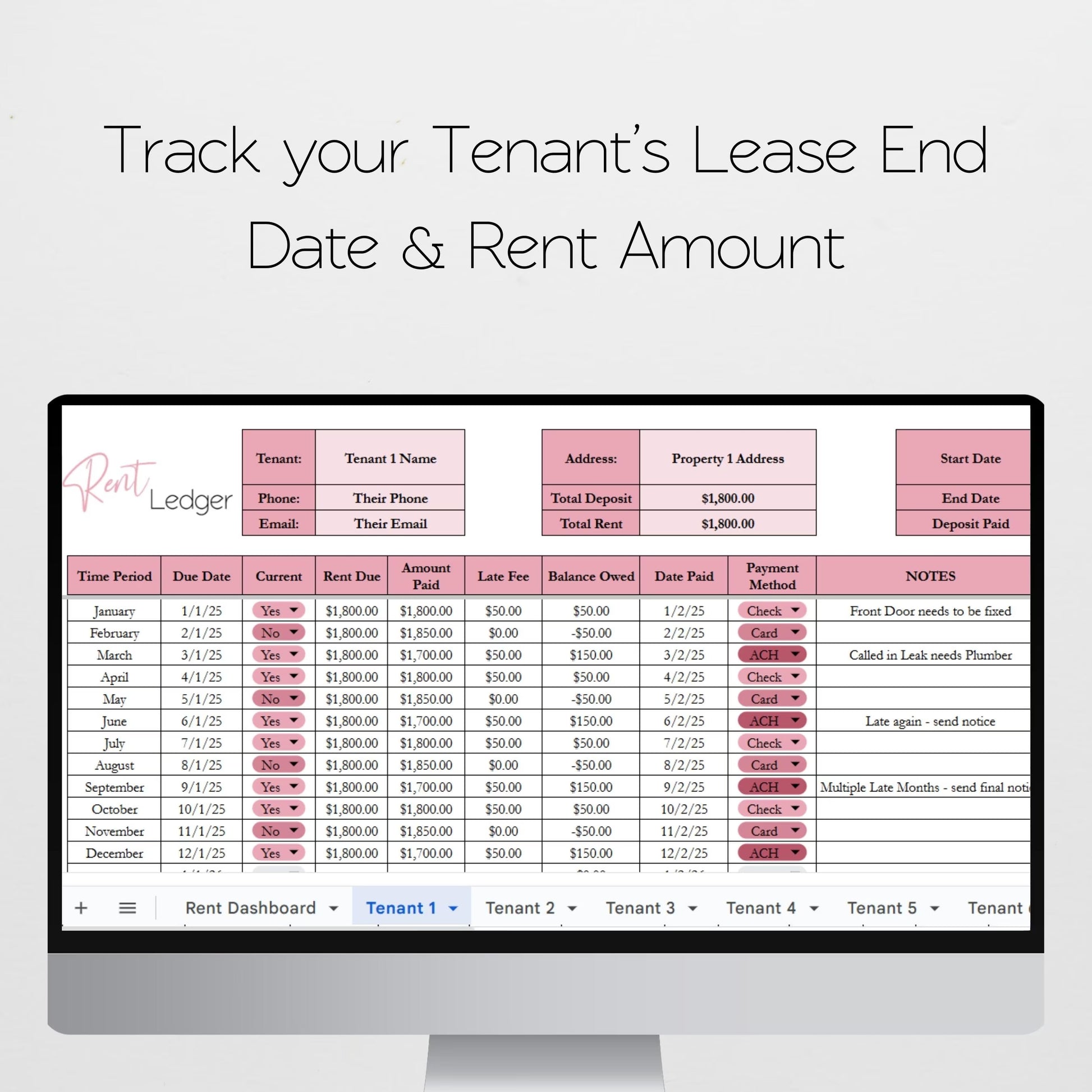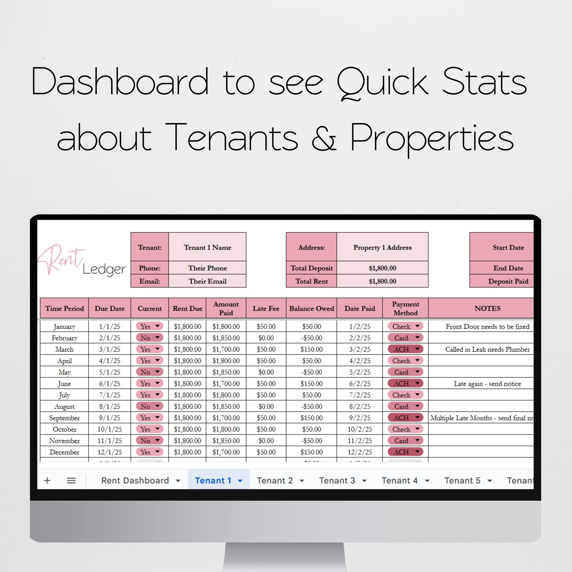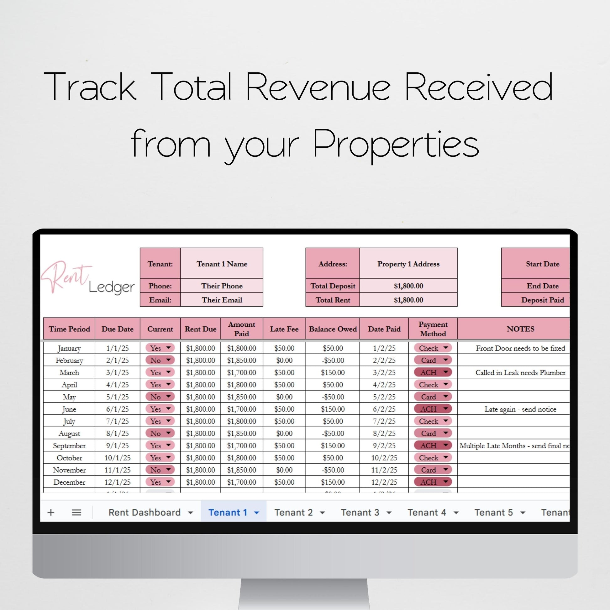 Rent Ledger Template, Landlord Spreadsheet Excel, Monthly Rent Payment Tracker Google Sheets
