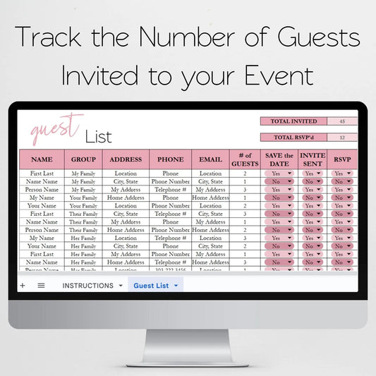 Guest List Excel Template, Invite Tracker, RSVP Tracker Google Sheet, Wedding Guest List, Address List